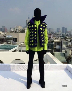 By coupling their use of modern (and utilitarian) fabrics like khaki, organza, polyester, and most prominent quilted parachute, with earthy motifs: spiraling rosettes, orchids, cattleyas made from woven parachute and conical pleating details. FIGI can coalesce polarities: mother nature and the industrialist culture of modern human nature, producing contemporary streetwear that homages the natural world.