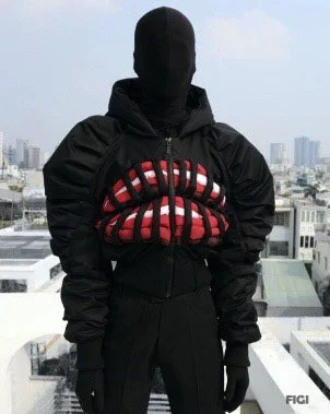 Yet-not lost in the brand's seemingly recent switch to younger more contemporary designs, the brand still boasts impeccable tailoring. Exemplary, one of their most impressive pieces in terms of artisanship, but also in delineation: the “Yell Puffer Jacket''- A sleeveless black puffer, and adorning the back a screaming face with detail as if Edvard Munch himself painted the face out of fabric. Warped with quilted parachute yet still managing to do so without heavy topstitching, the face appears out of creases, almost like an eerie accident. But the resemblance was entirely intentional, complete with teeth, eyes, and a mouth.