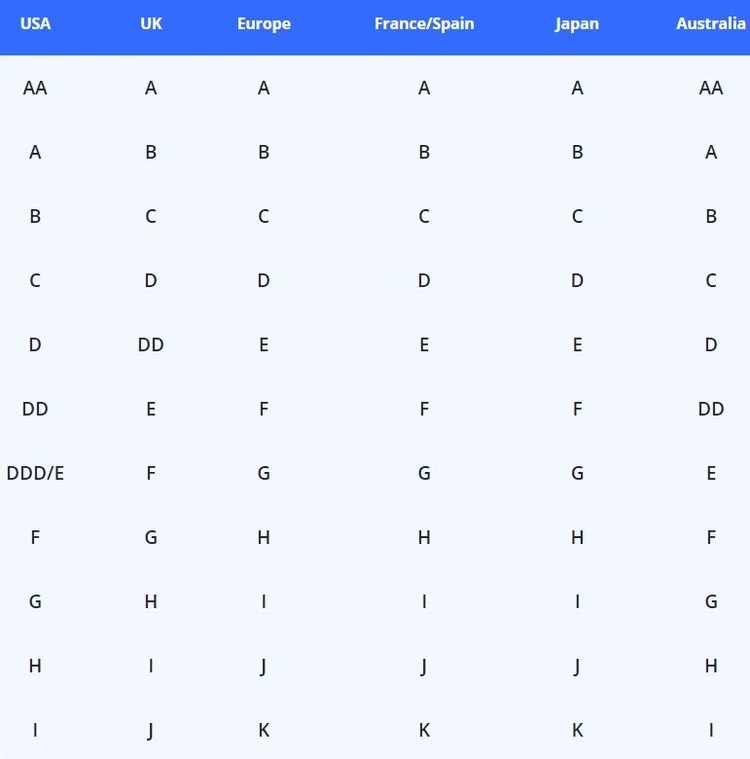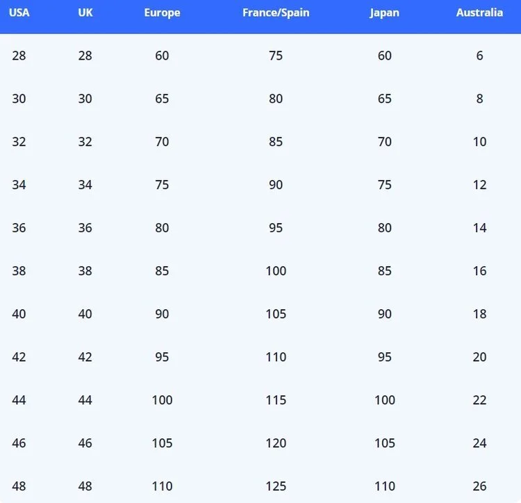 Si vous avez besoin d'aide pour convertir les tailles, voici un tableau pour vous aider !