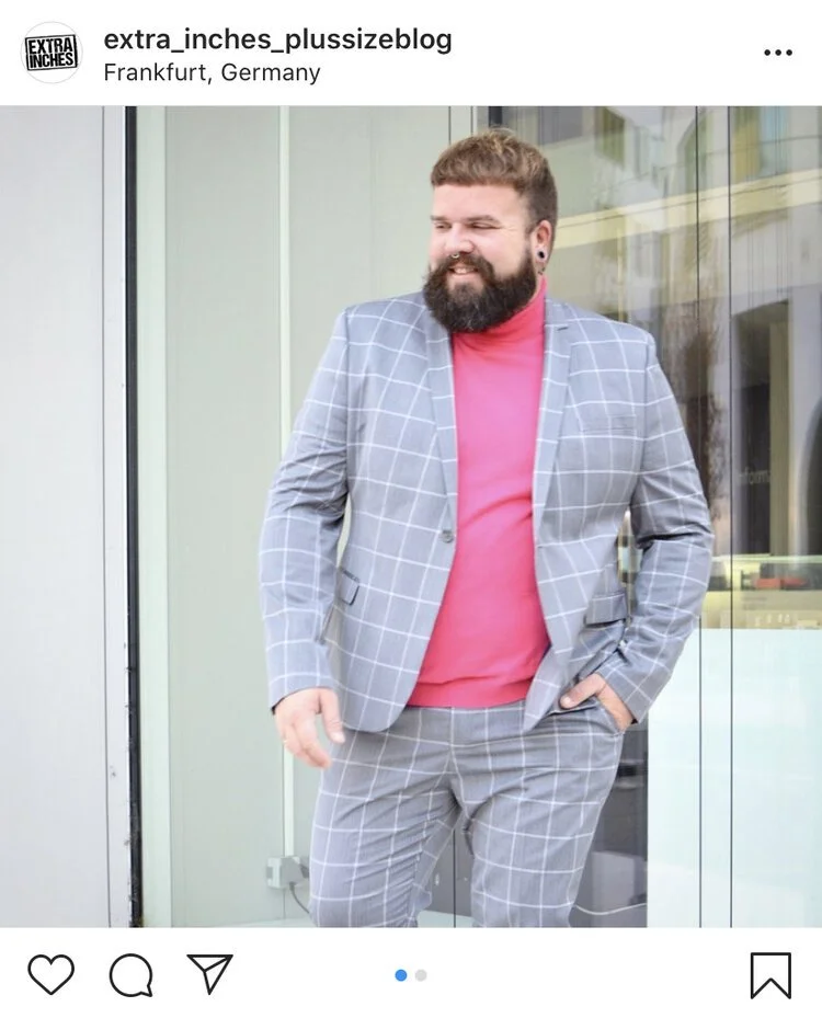 Plus-size model Claus Fleissner runs a fashion blog called extra_inches_plussizeblog where he focuses on men's fashion and self-acceptance. His page is ideal for those who are looking for men’s outfit inspiration but are not sure where to start.