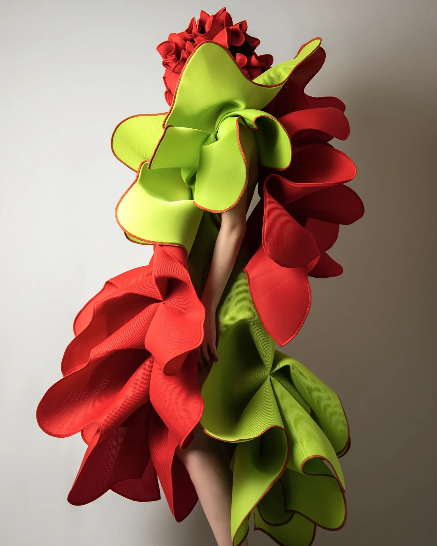 Je présente souvent la relation entre la nature et l'homme comme un thème. Ma dernière collection est basée sur les formes florales et biologiques et souligne leurs silhouettes par des contours de bordure. Ce que j'avais à l'esprit en créant, c'était l'espace entre la nature et l'homme et la limite entre eux.