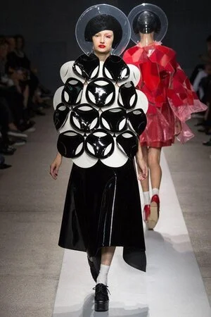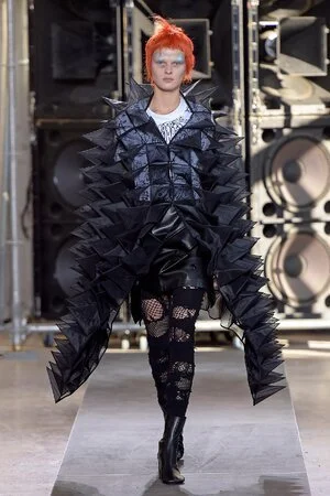 Junya Watnabe is known for his conceptual designs and his brand being “techno couture”. He is fond of synthetic and technological materials and fabrics. Watanabe uses a mixture of the synthetics and his technical design process to create his best work. His draping and construction are extremely intricate, which is what makes him stand out as a designer.