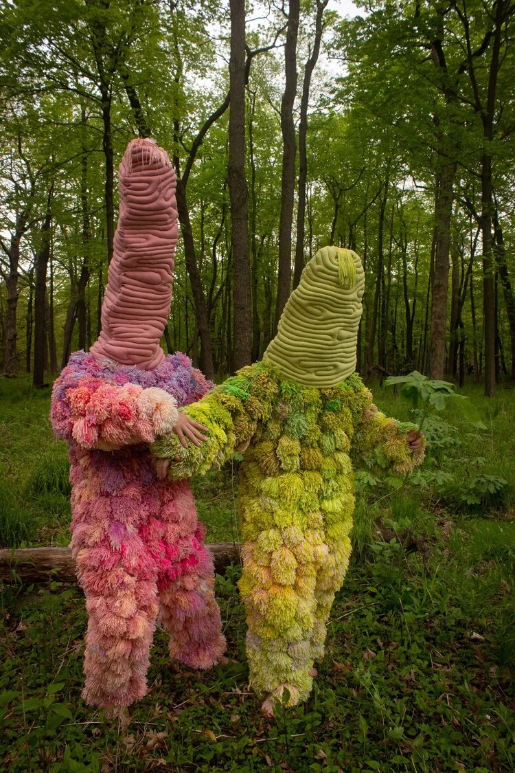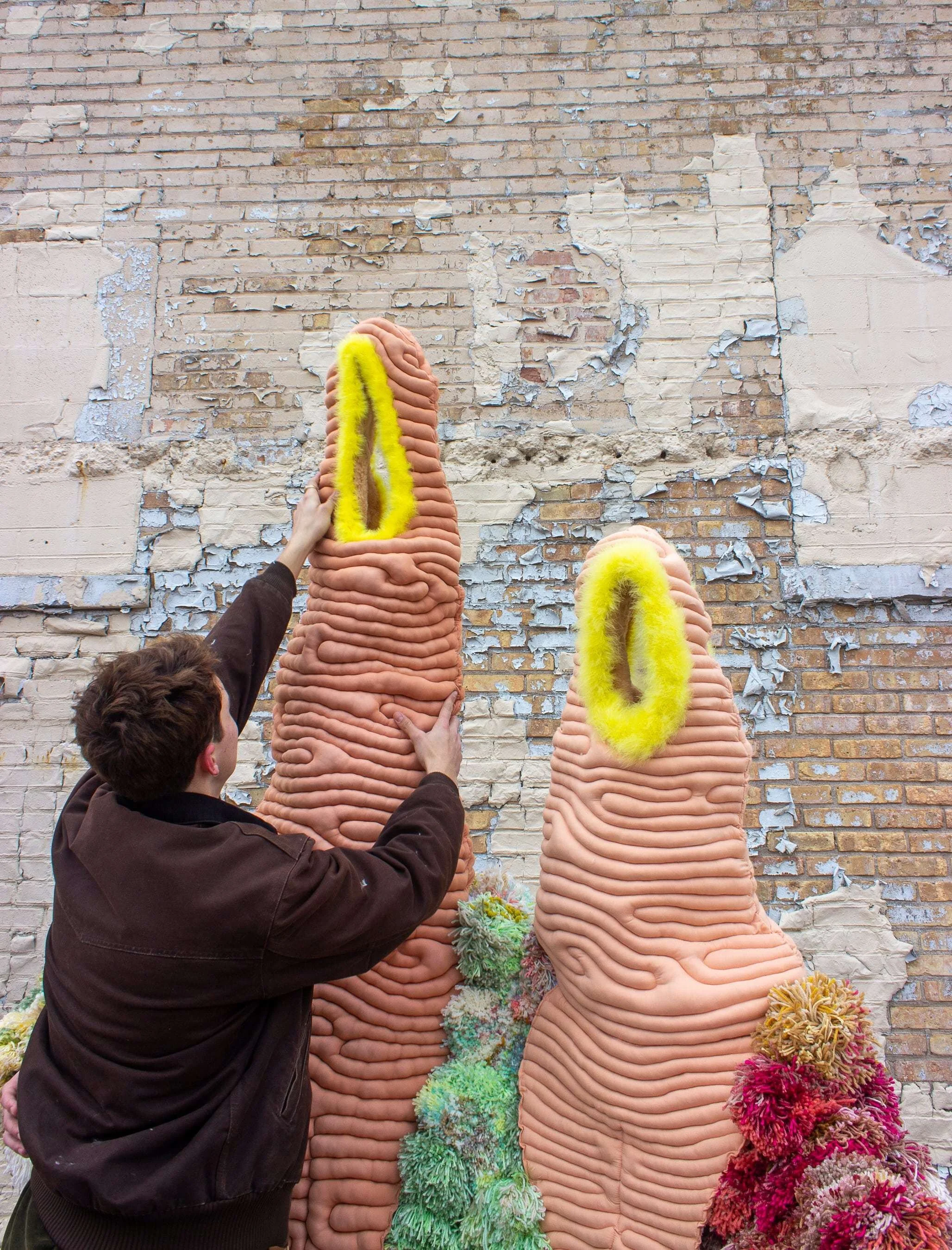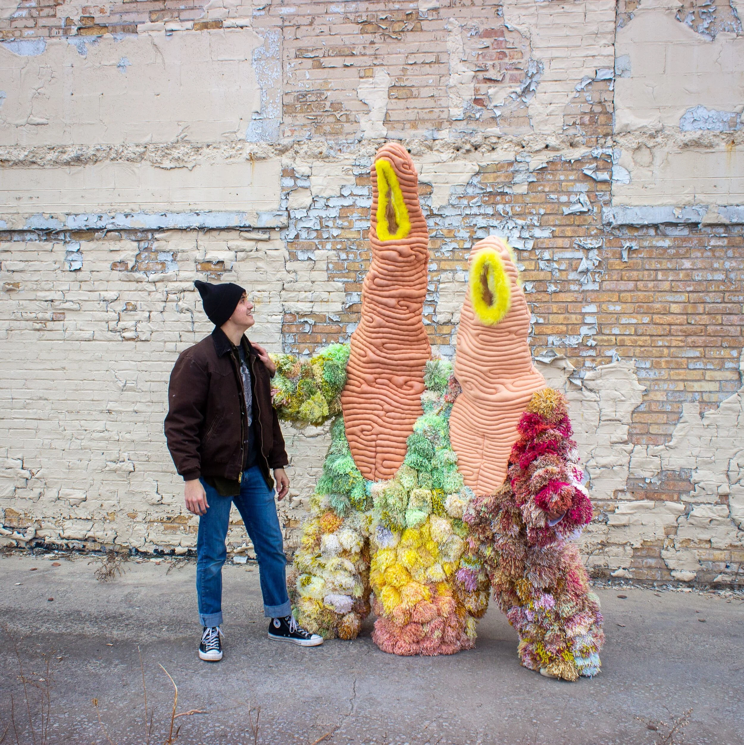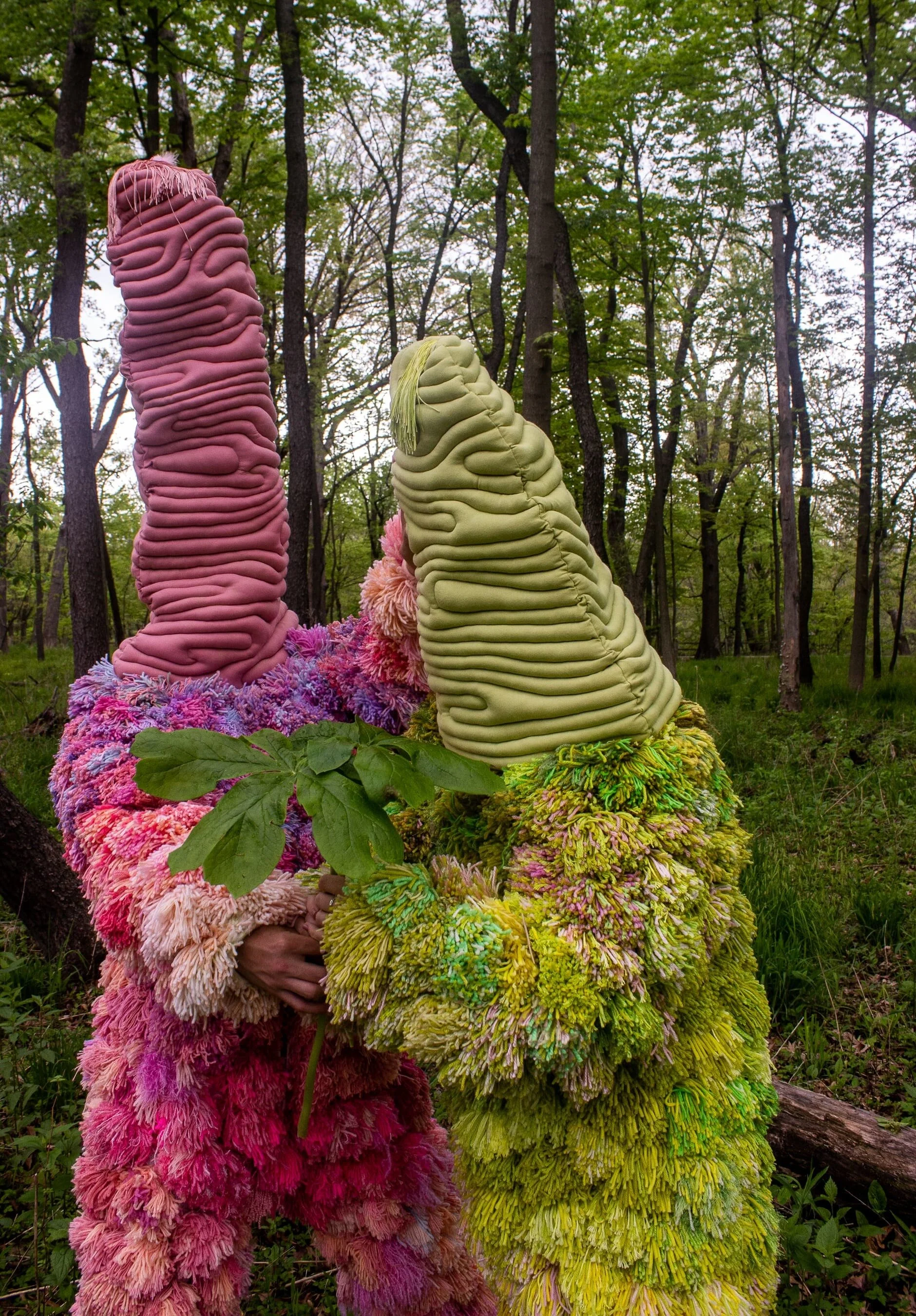 My sculptural garments are inspired by the erotic and flamboyant, and how these relate the unrestrained richness of the evolutionary history of life on Earth. The materiality of my work is influenced by the intrinsic playfulness of fiber and textile. I am also excited about the possibilities of soft sculpture, quilting, weaving, and latch hook. When I think about biodiversity and creation, I think of it in a really playful way. The colors, textures, and patterns that Nature has to offer are remarkably exuberant. For instance, the mating rituals of many exotic birds are super funky and fun, almost to the brink of absurdity. Bacterial microcosms and the spectacular flashes of bioluminescent organisms are other great examples. Sea creatures come in all marvelous shapes and sizes, because they do not worry about gravity. Jellyfish, anemones, and other gelatinous siphonophores are perfect examples. For these reasons, I believe that creation exists in constant celebration.