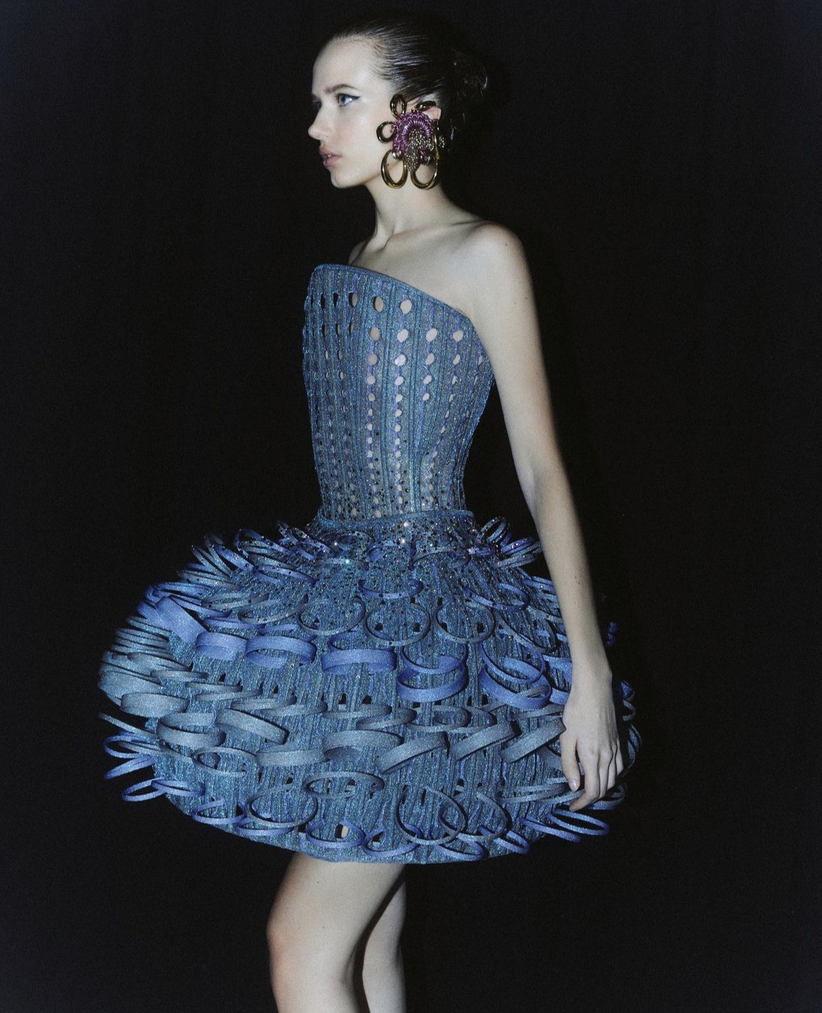 La façon dont Song utilise des médiums mixtes et joue avec les formes rappelle l'art réalisé à partir d'objets trouvés, en utilisant une variété de textures (qu'il s'agisse de métaux, de tricots ou de diamants) pour donner à chaque look un volume supplémentaire.