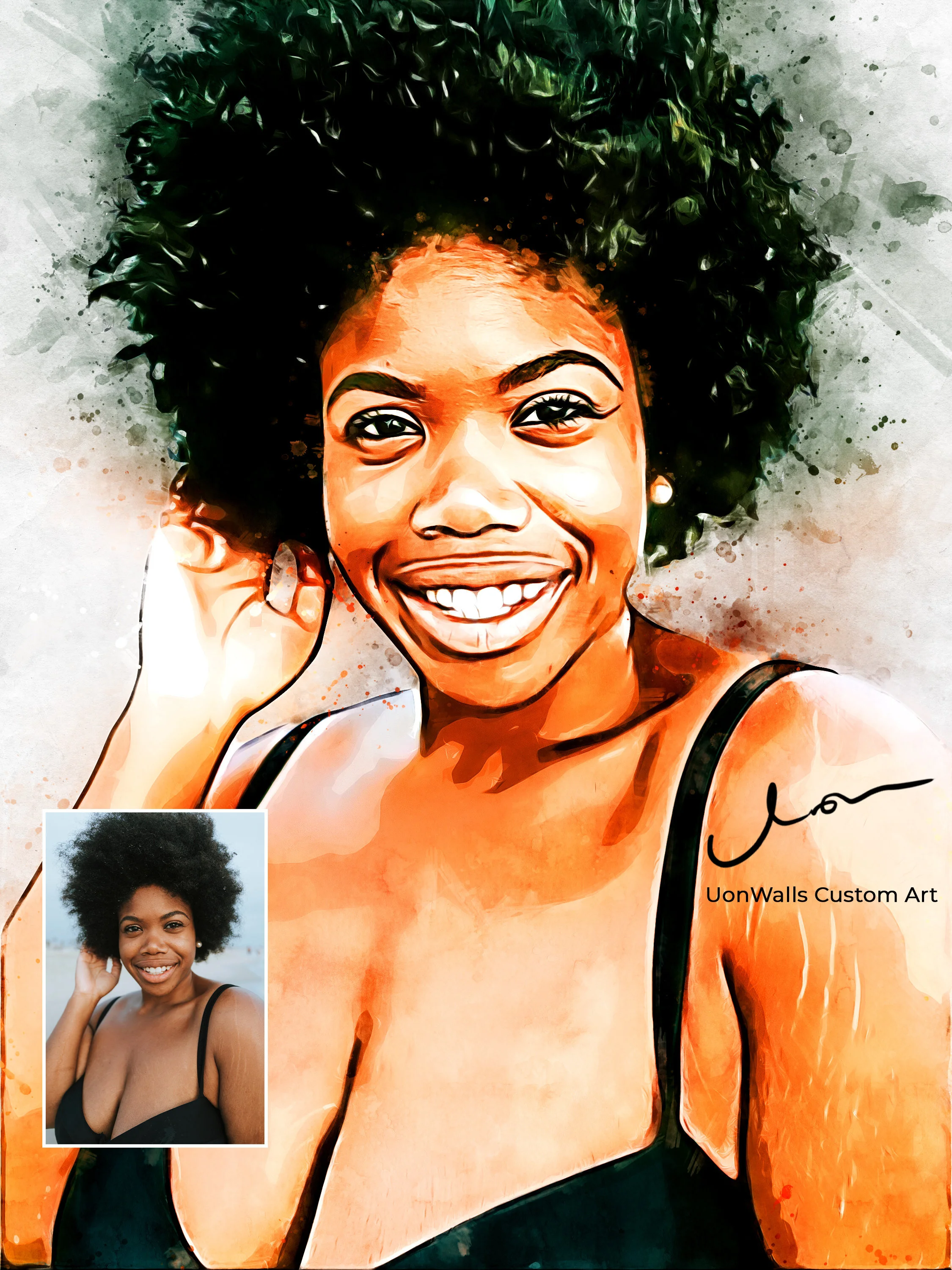 Danni Holiston is a digital artist from London who specializes in “Custom Wall Art Starring You.” You can best contact her at her Etsy shop UonWallsCustomArt , where all Volup2 readers will receive 15% off their purchase using that link! You can expect to wait 5-10 days for a finished piece, which can be shipped worldwide as both cotton canvas prints and fine art giclee prints. Prices average around $130.